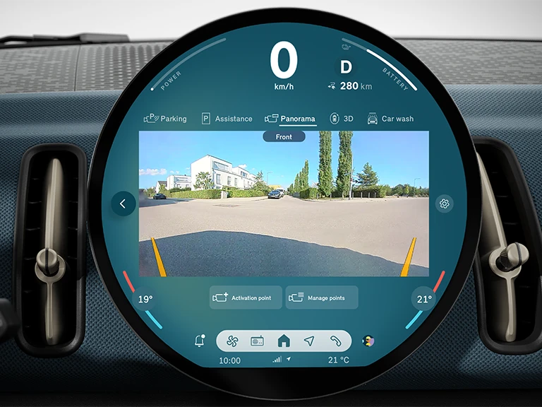 The ground clearance or ride height of a car measures the least distance between the lower end of the vehicle body (chassis) and the road. So it defines the lowermost part of your MINI in comparison to the ground. The unladen ground clearance of the MINI Countryman is 165 mm, which is optimal if you are going to do a lot of driving on bumpy roads or encounter uneven surfaces and potholes.